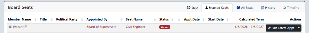 Now you will see that Mojo is listed on the board as an inherited Seat serving the same term he is serving on the Airport Committee.
